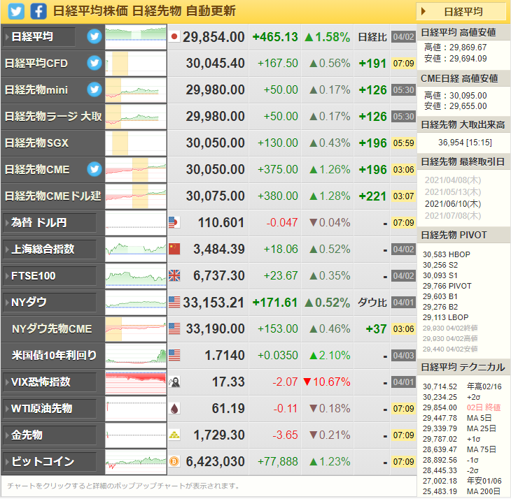 ワクチン接種ペースの加速からリスクオンの動きは続きそうだお。