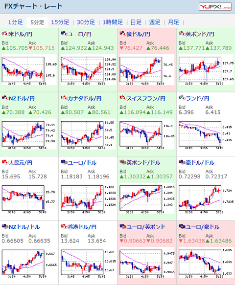 週明け、ドル円は20pips程上窓を開けてのスタート、対してクロス円は円高に振れてのスタートだお。