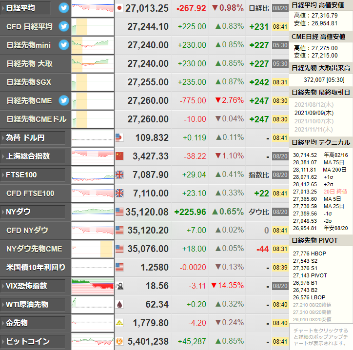 状況は変わっておらずデルタ株の感染拡大により商品市場が下落気味。