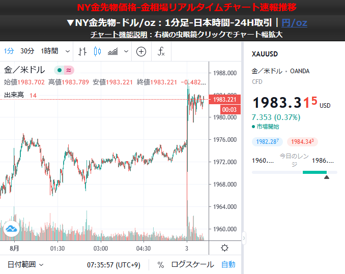 そんな中金価格が再び大きく上昇中だお。