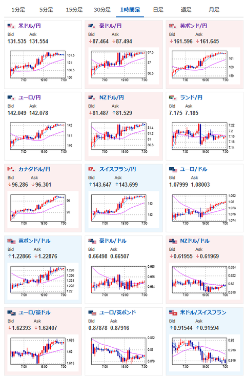 現在は131円台半ばでの推移で要人発言や経済指標などの材料次第かなという動きだお。
