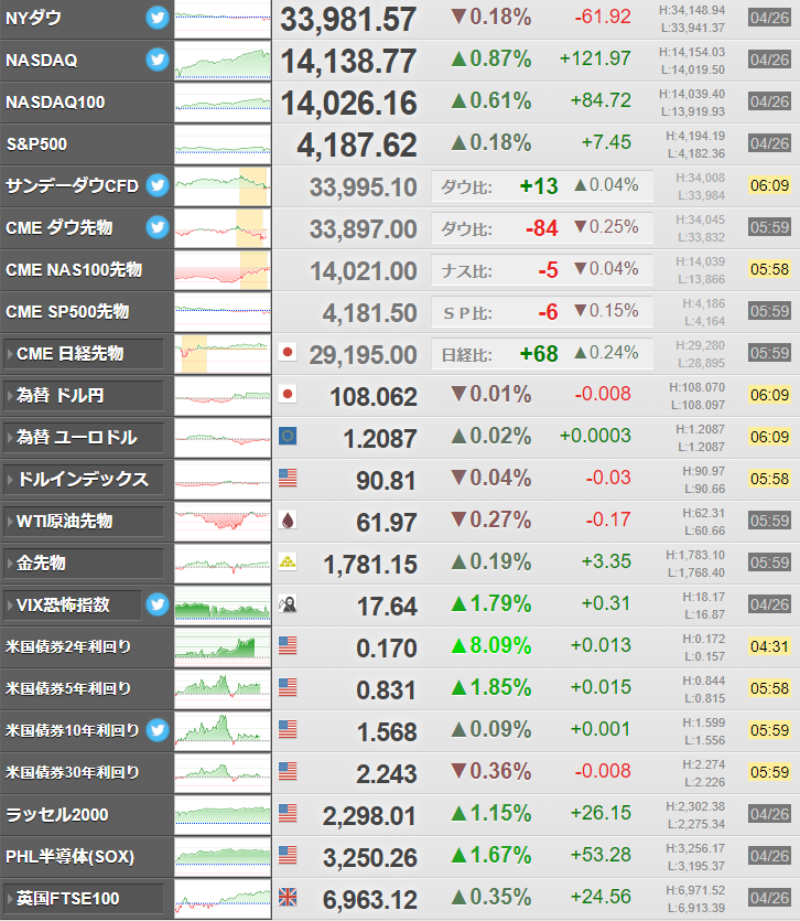 米国株価指数は緩和継続及び好調な企業決算でさらに上値を伸ばしそうかなと思われるお。