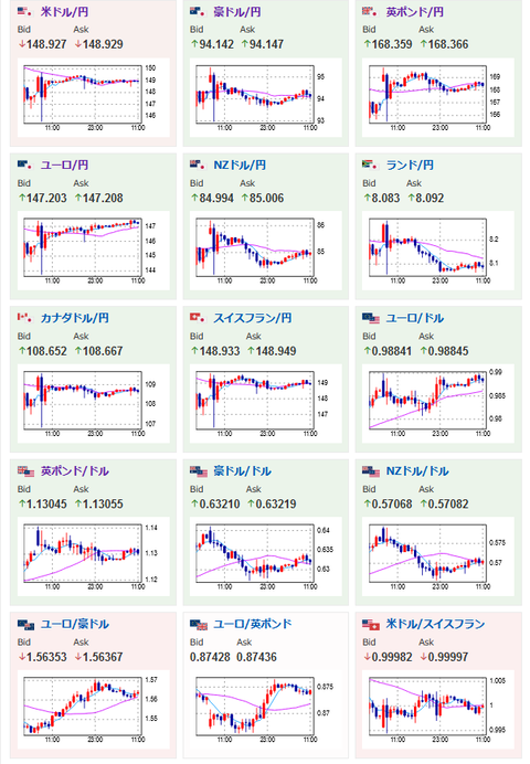 24日の激しい動きは落ち着き、現在ドル円は1ドル149円手前付近でうろうろしているお。