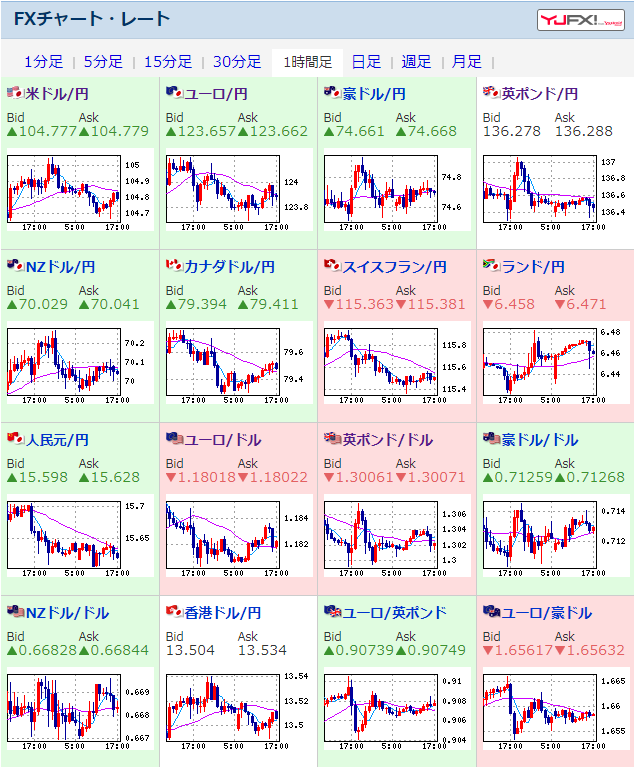 ドル円も105円台に乗せたところで一旦押し戻され再び104円台。