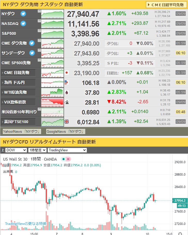 9日は米株全体、特にハイテク株などに押し目買いからの反発、原油、為替なども戻しているお。