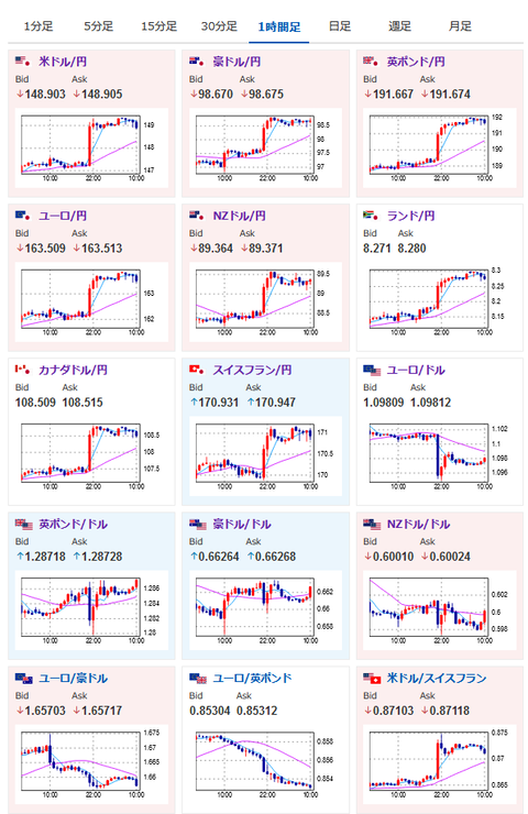 引き続き次の材料待ちで148円台後半~149円台前半での推移が続いているお。