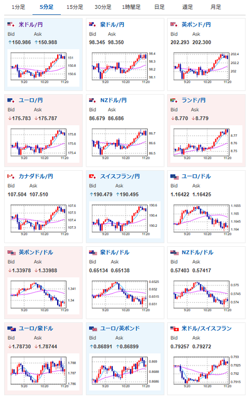 円安、株高、金高が進行で、仮想通貨は昨日少し伸びていたけれどまだ伸びが弱いという動き。