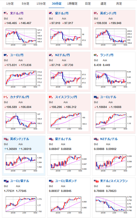 昨日は強めの米小売りでドル円は一旦147円台に復帰したものの、その後は米債利回りが下げる動きで146円台へ。