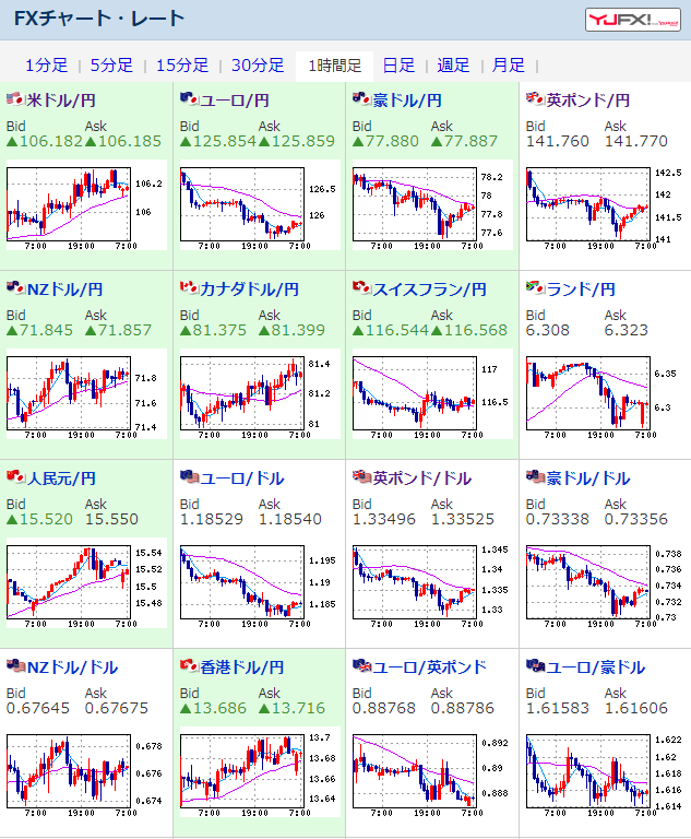 1ドル106.3円付近まで上昇も現在は再び106.1円台まで押し戻されているお。