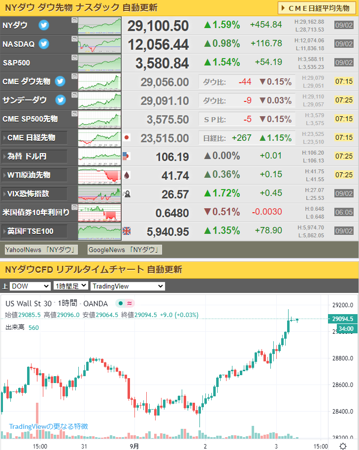 米国の経済回復の遅れとは裏腹に米国株価指数は大幅な上昇、S&P500は2ヵ月ぶりの大幅高となっているお。