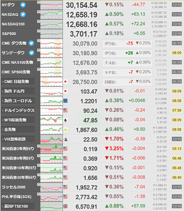 16日はFOMCや米追加経済対策の協議など色々と材料があったものの、どちらも予定通り無事通過といった雰囲気だお。