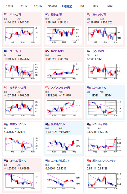 今のところ最強はNZドルで、次いでスイスフラン、ポンドという状況だお。