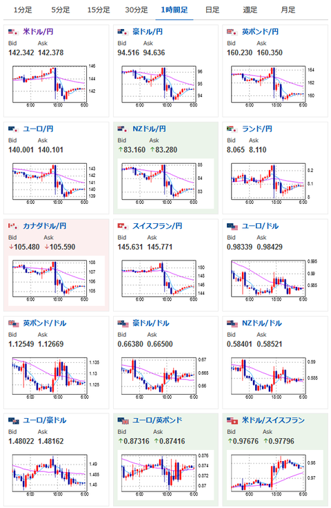 ドル円は1ドル145.9円から140.3円あたりまで。
