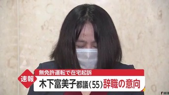 木下都議は、運転免許停止中に人身事故を起こし書類送検され、7回に渡って無免許運転をした罪で在宅起訴されている。