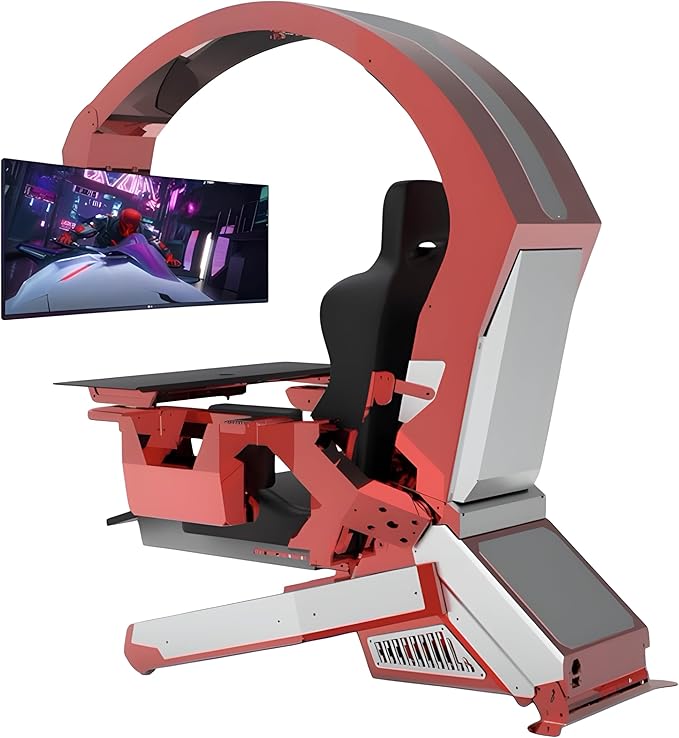 ゼロ重力エルゴノミクス スマートセンサーウェルカムライト搭載 トリプルモニター対応 没入型ゲーミングコックピット デスクチェア一体型 (D) [並行輸入品]