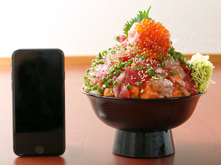 ぱっと見わかりにくいけれど、1kg超えの海鮮丼とのこと。