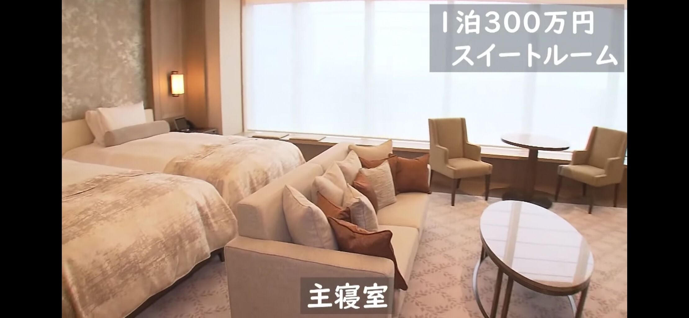 バッハ会長が利用していると目されていのがスイートルームだ。そのお値段1泊300万円、広さは730平方mという。