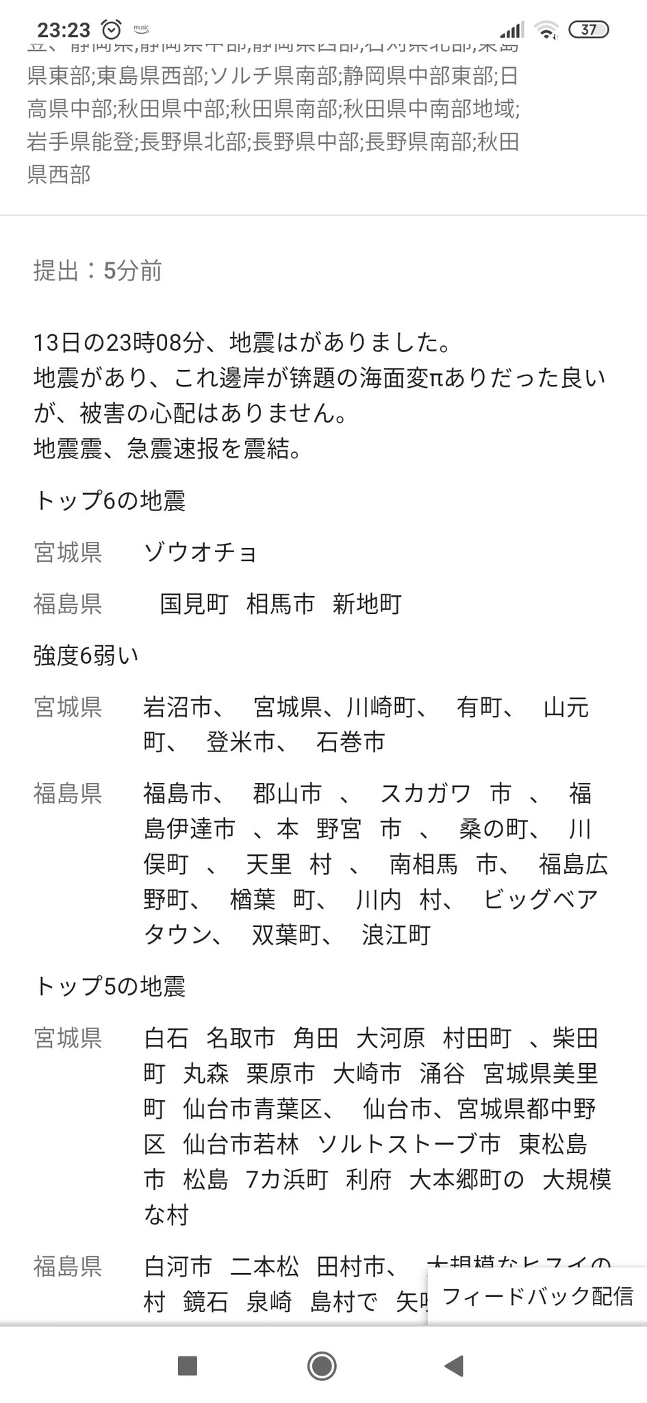 ネットで調べたところXiaomiに届いた緊急地震速報らしいんだけれど・・・。