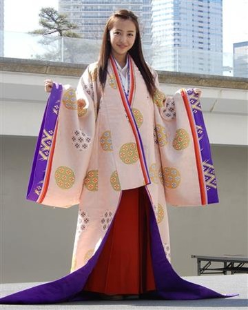 ひな祭りにちなんで十二単風の豪華和装で登場した板野は「動きにくかったですね」とステージまでの移動にひと苦労したが、