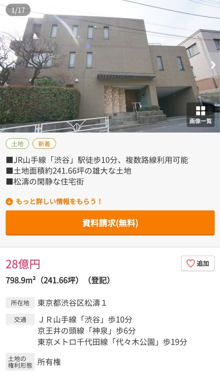 【画像】渋谷区松濤の土地が売りに出される!値段はたったの28億円!