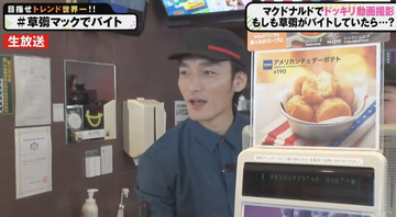 草なぎ剛が、マクドナルドでクルーのアルバイトを体験。制服姿で接客をした。