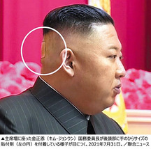 朝鮮中央テレビが5日に映し出した映像を見ると、席に座った金正恩氏が頭を他の方向に向けるたびに右側後頭部に貼り薬が貼られた跡とみられる四角の白い痕跡が鮮明に確認された。ある医学専門家は「皮膚を露出させるために髪の毛を寄せ、貼付剤や医療用テープを貼った痕跡のようだ」と説明した。でき物や脂肪を除去した後に皮膚を保護するためばんそうこうを貼った可能性が考えられるという。韓国の情報機関である国家情報院は昨年、金正恩氏が公開の席で後頭部に貼付剤のようなものを貼り健康異常説が広がると「貼り薬は数日後に除去され、そこに傷跡はなかった」と説明した。