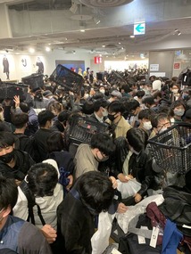この日、店舗に足を運んだ人からは、「イーアスつくばのユニクロ+Jの列すご」「新宿ビックロは朝7時で100人以上の行列」「こちら横浜ですが、ユニクロ+Jは地獄」「+J買うの2時間待ちみたいよ…」などと動画や画像による“ライブレポート”が続々。なかには「並んで買ったけど、上にあるやつを棚に足かけて取ってる猿いてドン引きしたわ」などと、一部の客の振る舞いに気分を害した人もいたようだ。