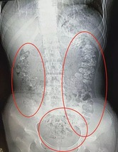 何日間も排便がなく、腹部CTスキャン検査を実施した結果、胃から腸、肛門まで100個以上のタピオカパールが数珠つなぎに詰まっていたという!