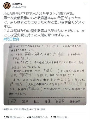 こんな嘘ばかりの歴史教育なら受けない方がいい。まともな歴史観を持った人間に育つはずない。