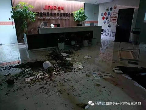1000億元(1兆8000億円)の不動産企業金科不動産本社は、100人の債権者が金を返せと唱え粉砕した