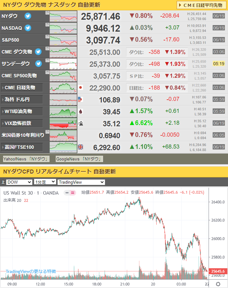 【相場】サンデーダウ、一時500ドル超下げる 第二波不安や広がるデモ、トランプ大統領暴露本懸念か