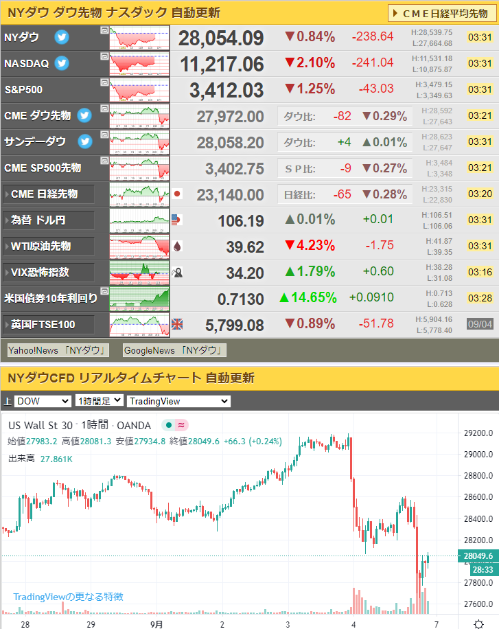 昨日のダウの下落はただの大きめ調整(もしくは押し目)かと思っていたけれど、今日も微妙に株安に押されるお。