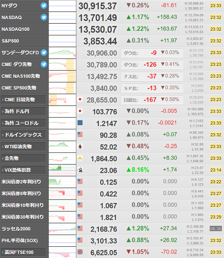 ダウは落ちているけれどナス、S&P500が150ドル超上昇。