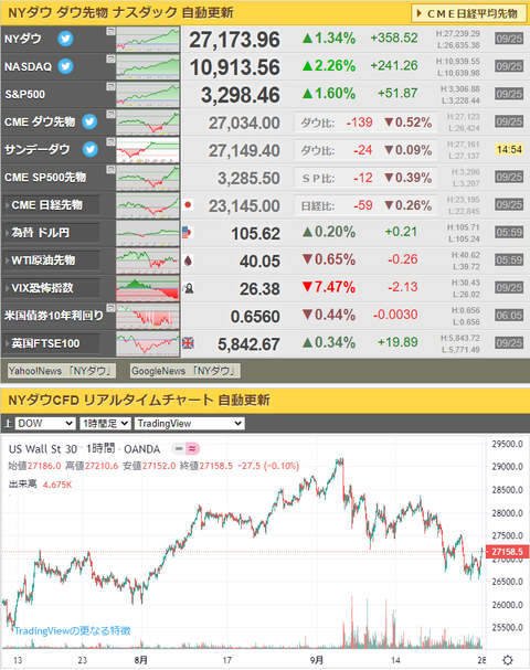 ただその後時間外でダウ先は再び下落しているお。