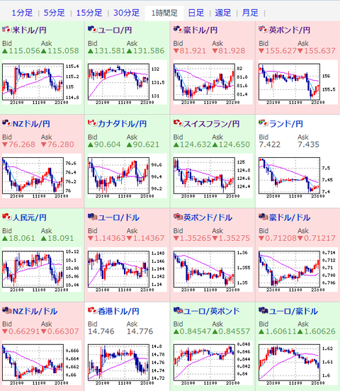 ドル円は一時115.4円付近をつけることもあったけれど、その後は円買いで1ドル115円ギリギリでの推移だお。