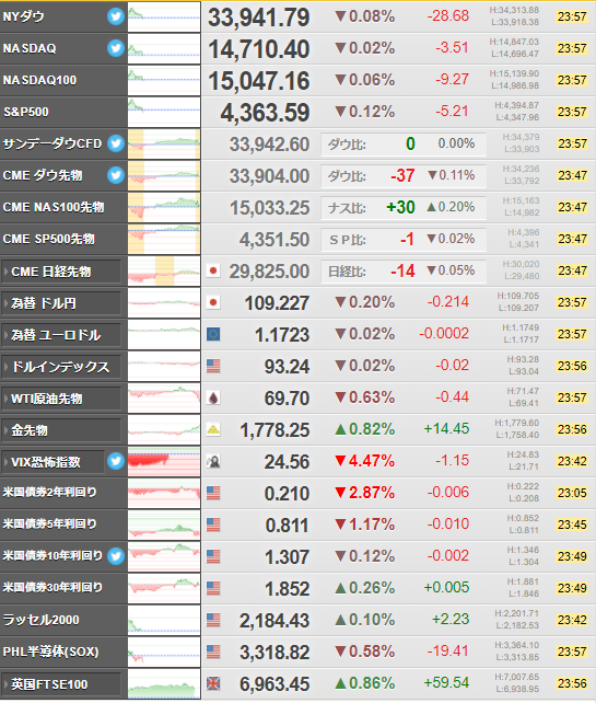 オープン時は300ドル程プラスになったけれど、やっぱり市場は全体的にリスクオフだお。