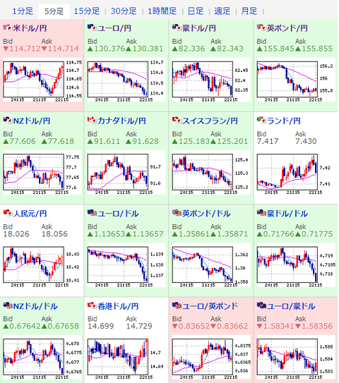 115円台には戻すと思ったのだけれど、一瞬タッチした後は114.5円台まで円高に。
