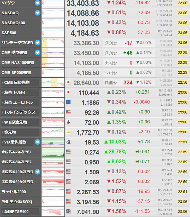 ただFRBはタカ派な発言が続き、本日の米国時間でダウは大幅下落しているお。
