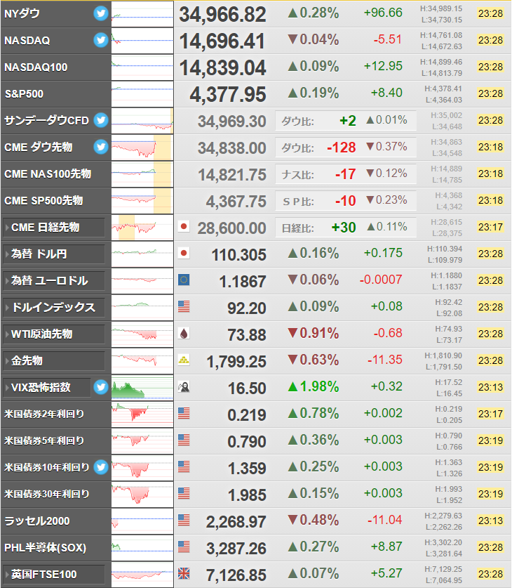 米市場がオープンしてからダウはプラス圏で推移しているお。