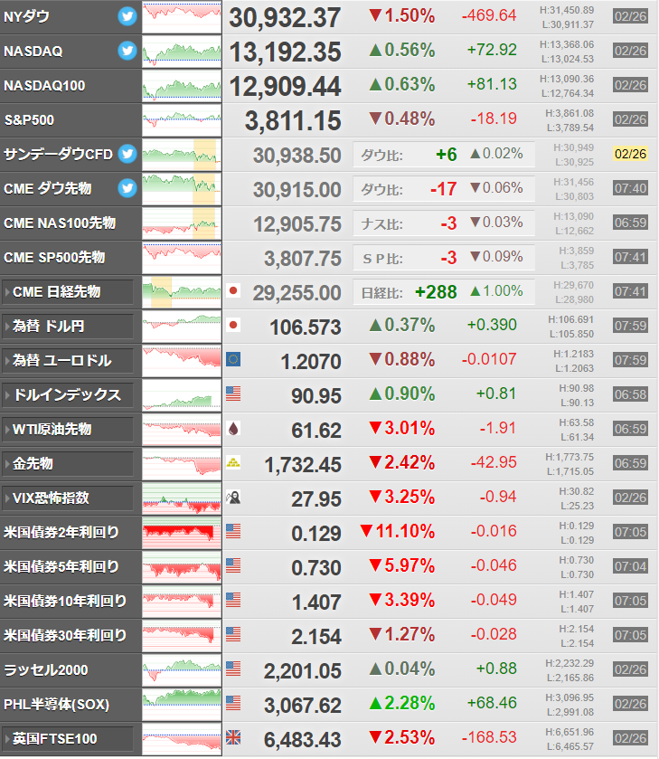 昨日管理人が「株価は微妙」と言っていた通り、一時的にダウは戻りかけたものの引け時には下げ幅拡大だお。