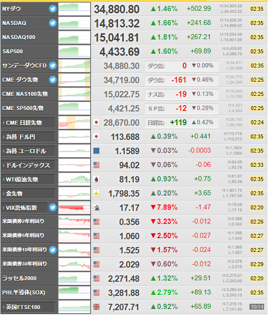 株価もダウは500ドル超上昇しているお。