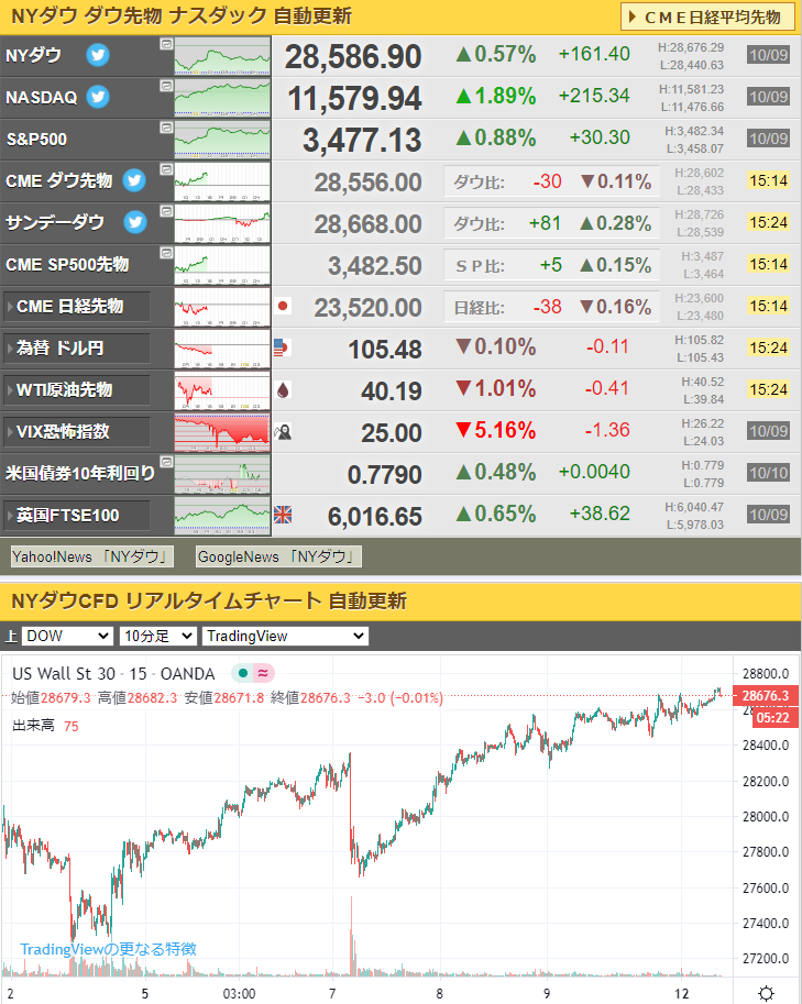 追加経済対策協議は微妙なところだけれど、ダウ現物はまだ微妙に上がるかもしれないな~という私見だお。