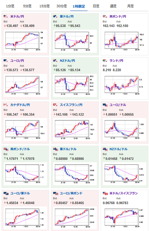 チャートを見る限り今は円が全面安といったところかお。