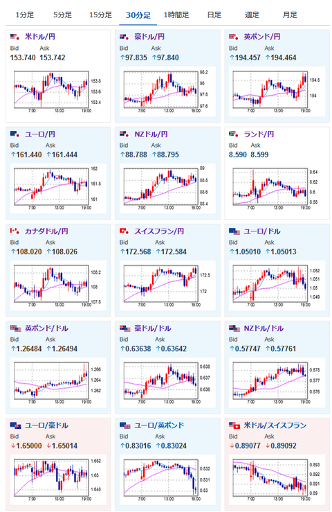 一旦1ドル153.97円あたりまで円安に伸びたものの、そこから米債利回り下落に伴って上値が重く154円手前でウロウロという感じだお。