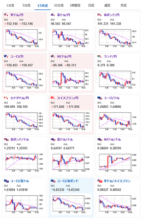 ちょうど日本市場が引けて欧州市場への切り替わりなので、流れが変化するかどうかに注目だお。