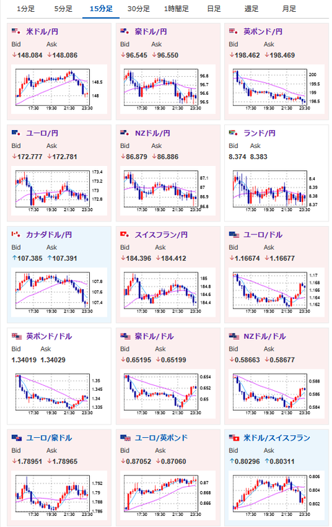 森山幹事長の辞意報道から急激に伸びていたドル円は1ドル148.9円付近で切り返し。