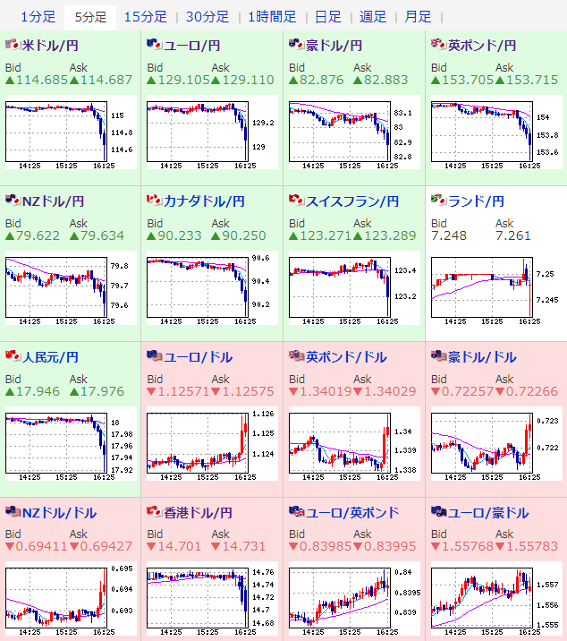 115円ギリギリからのガクッと下げ、そして現在は114.6円台。