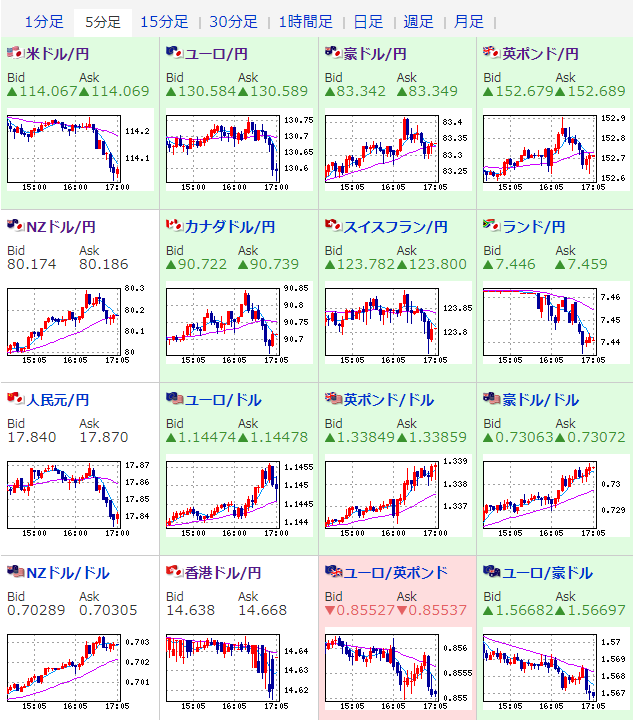 現在はドル円、クロス円共にわずかに円高となっているお。