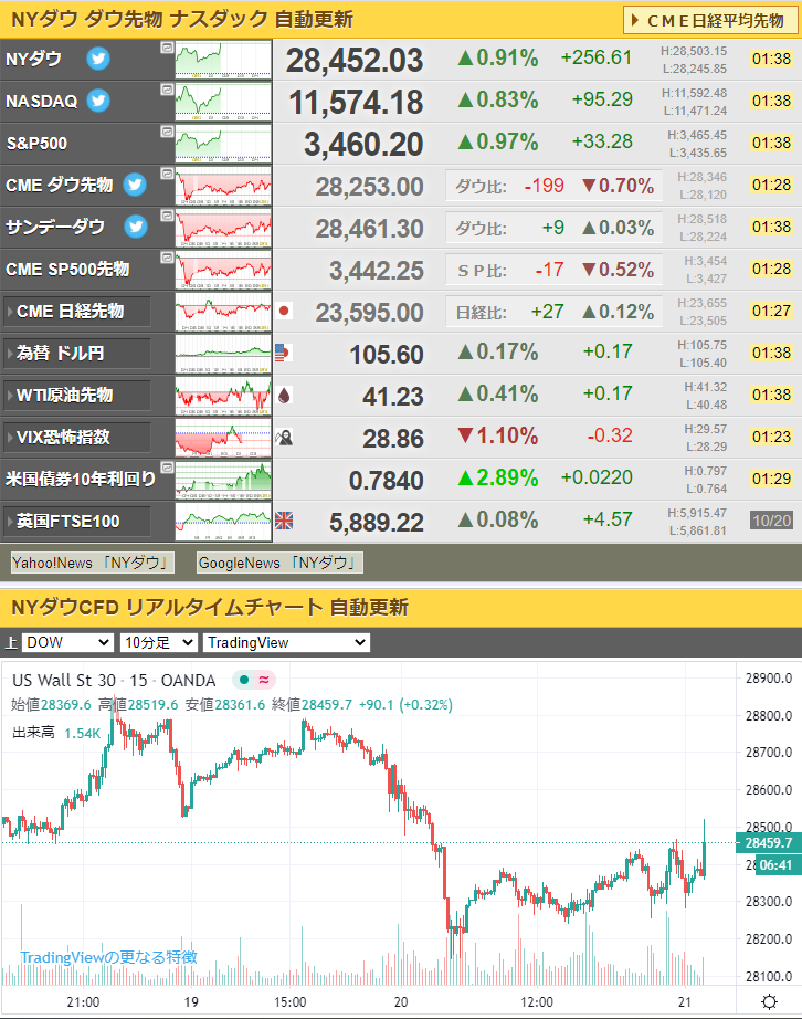 ペロシ下院議長が追加経済対策に対して「楽観的」と述べた事でダウが上がってますね