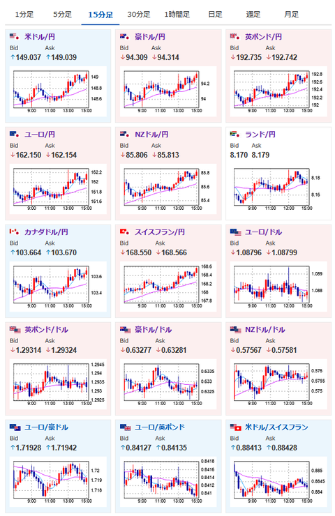 ドル円だけでなくクロス円各種でも円安傾向。
